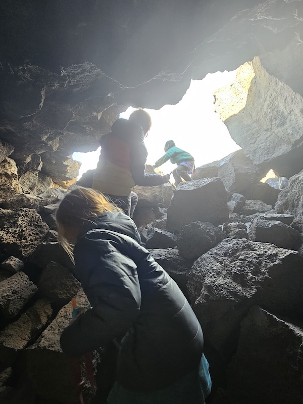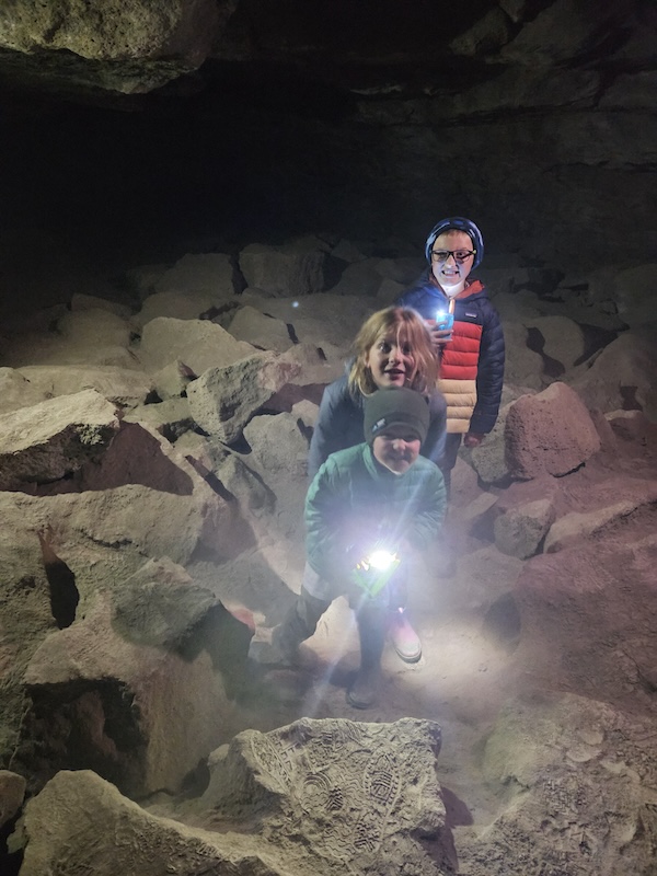 Thankfully, he started feeling better, and we were still able to explore some nearby caves and lava tubes with the kids, which was a pretty neat experience.