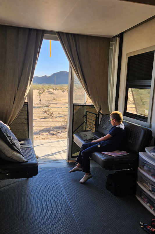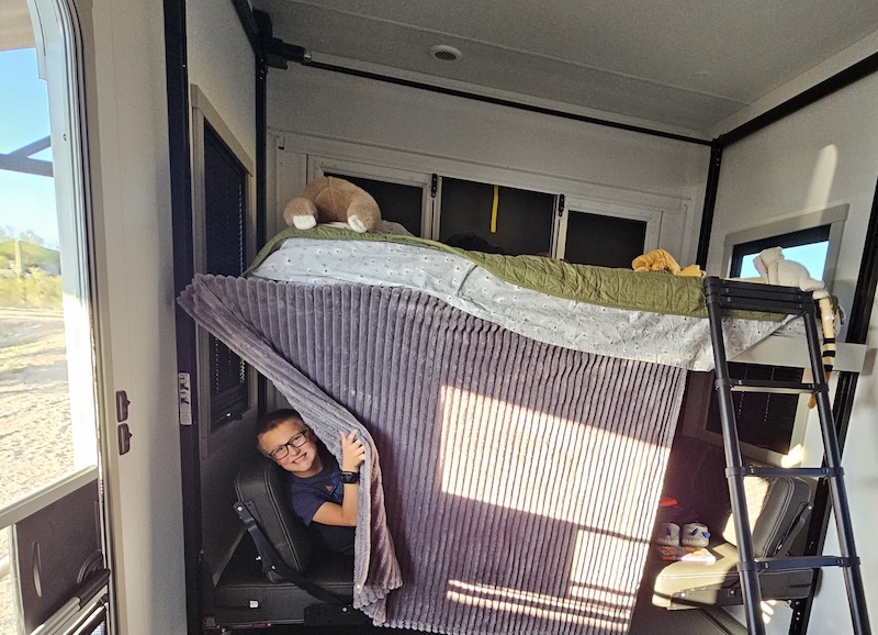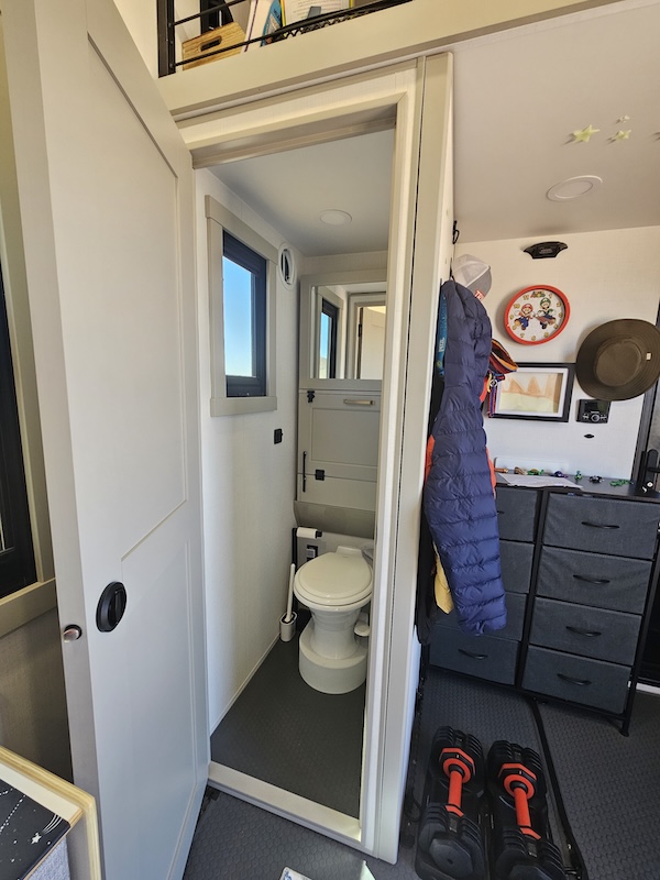 Having a separate space just for him has been such a blessing. Sometimes, having two toilets is simply essential. We honestly didn’t realize how much we’d come to rely on it, and now that we’ve experienced it, we’re pretty sure we’ll never go back to having just one bathroom in an RV. It’s little conveniences like this that make full-time RV life feel a lot more comfortable—and a lot less stressful!