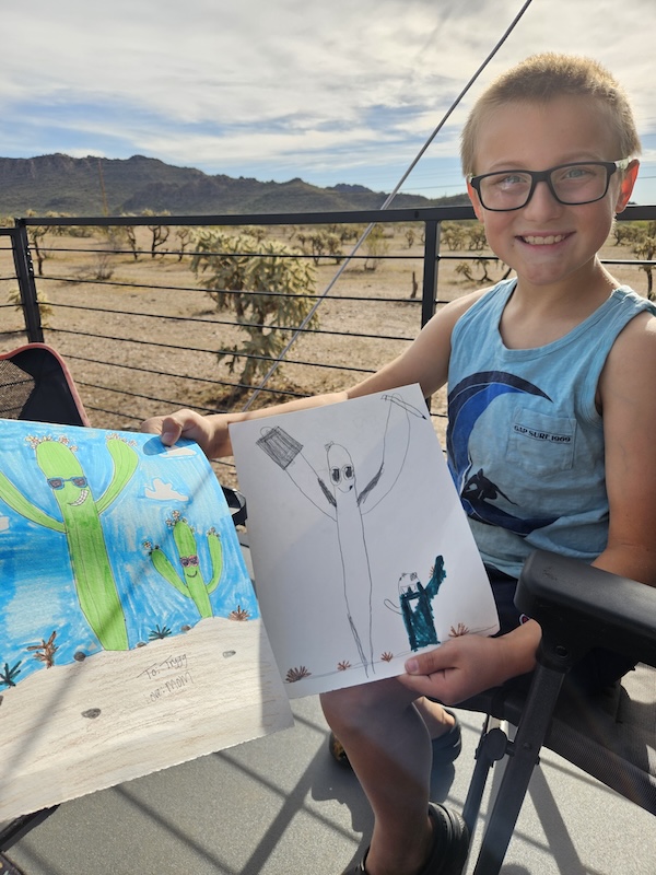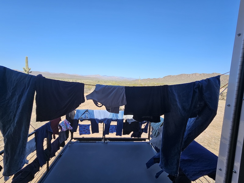 We haven’t used it much yet, but when we do, Trygg loves doing his homeschool out here, and I love sitting back and taking in the views—it’s the perfect little escape right outside our door. We’ve also discovered it’s the perfect spot for drying laundry out in the desert—simple, and practical!