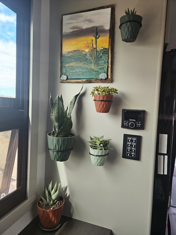 This is also where we hung the painting my father-in-law made for me, and it’s one of my favorite pieces in our home. It’s a sunset from our favorite boondocking spot, and I love that no matter where we are—no matter how far we travel—I still get to look up and see one of our favorite views. It feels like carrying a little piece of “home” with us wherever we go.