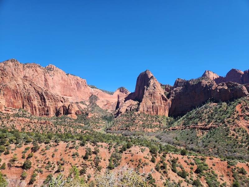 I know Zion is a favorite for a lot of people, and while I can absolutely appreciate how beautiful it is… it wasn’t my favorite stop. Part of that was timing—we hit it right in the middle of spring break, and the crowds were intense. I also wasn’t a huge fan of the shuttle system required to access most of the hikes. As someone who gets car sick, the idea of riding a packed bus into the park didn’t sound all that appealing, so we opted for the scenic drive instead. And I will say—the drive alone was incredible. Still, I’d love to go back during the off-season when we can explore more of the trails at our own pace. It’s definitely a place worth seeing, and I’d like to experience it a little differently next time.